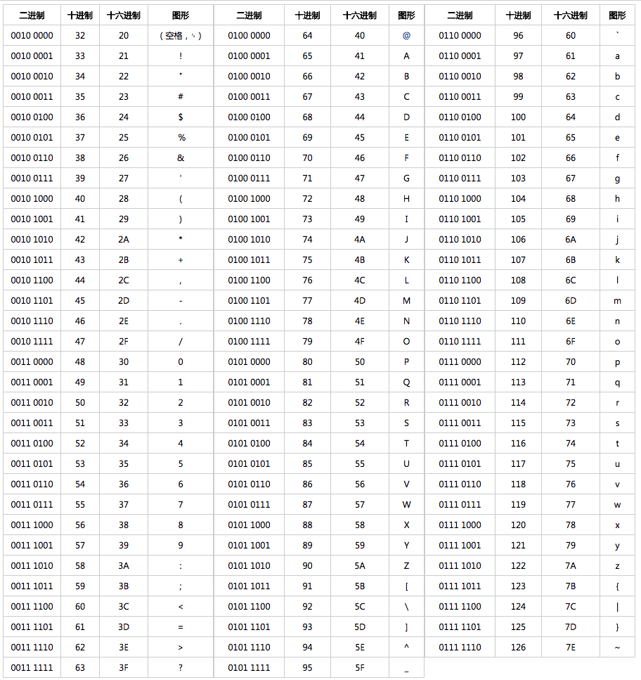 ASCII (American Standard Code for Information Interchange,美国信息交换标准代码) 是一套主要用于现代美国英语的字符集(这也是 ASCII 字符集的局限性所在)。