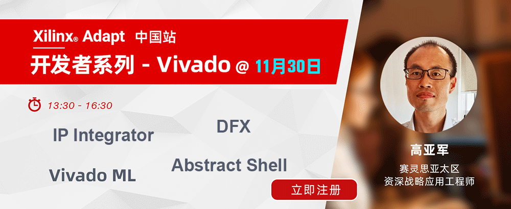 11月30日-12月7日,Xilinx Adapt - 中国站将迎来“开发者系列”专场活动,11月30日 Vivado 专场日程安排如下: