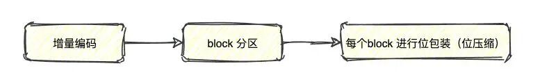 - 为了减少 postings list 的磁盘消耗,lucene 使用了 FOR(Frame of Reference)技术压缩,带来的压缩效果十分明显。