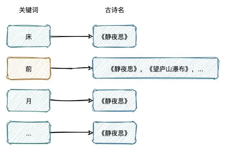 这样我们一输入“前”,借助倒排索引就可以直接定位到符合查询条件的古诗。