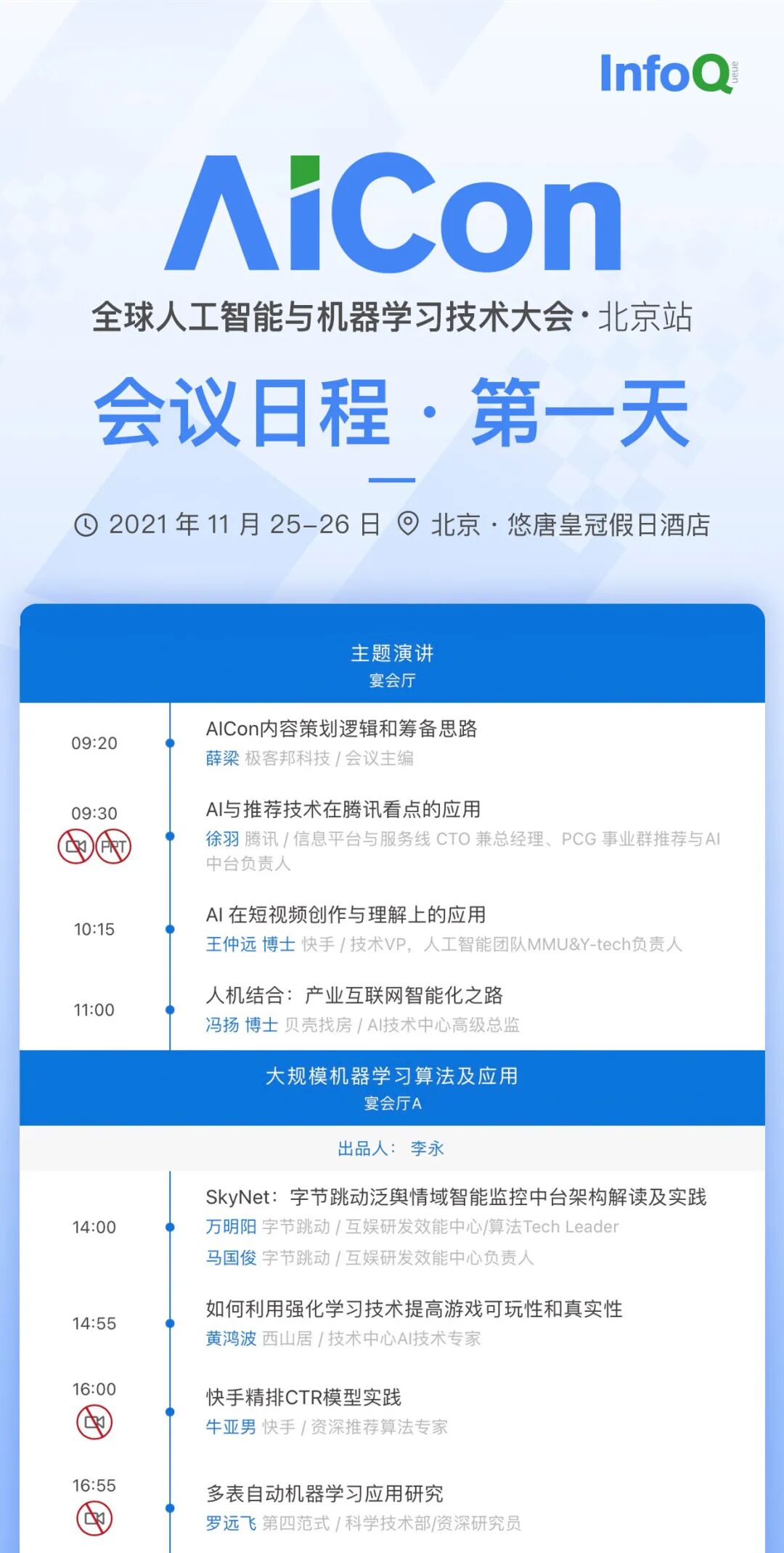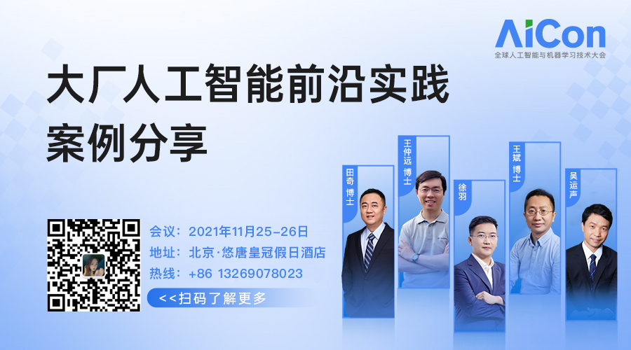2021 年 11 月 25-26 日,AICon 全球软件开发大会 2021 年将在北京悠唐皇冠假日酒店举办,本次 AICon 会议,我们把 2020 年和 2021 年,这两年的业界 AI 技术聚集在一起,分享给大家。