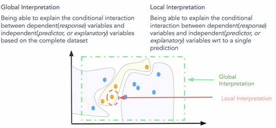 :就是试图理解“模型如何进行预测?”和“模型的子集如何影响模型决策?”。要立即理解和解释整个模型,我们需要全局可解释性。全局可解释性是指能够基于完整数据集上的依赖(响应)变量和独立(预测变量)特征之间的条件交互来解释和理解模型决策。尝试理解特征交互和重要性始终是理解全球解释的一个很好的一步。当然,在尝试分析交互时,在超过两维或三维之后可视化特征变得非常困难。因此,经常查看可能影响全局知识模型预测的模块化部分和特征子集会有所帮助。全局解释需要完整的模型结构,假设和约束知识。
