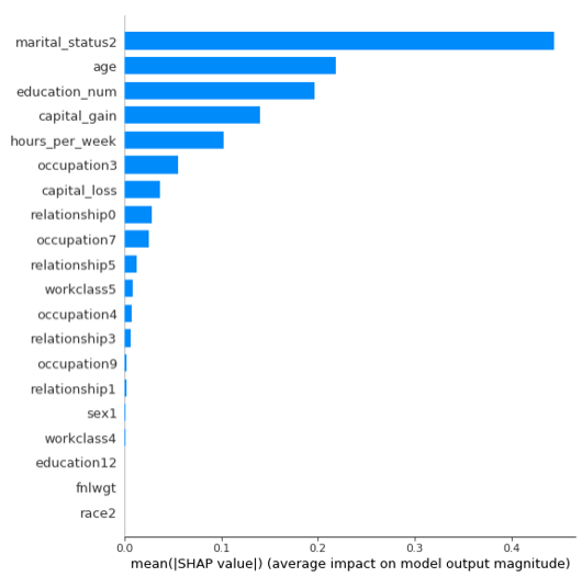通俗理解:个人影响=个人合作贡献,减去其它N-1个人的贡献;下面还是以收入水平数据集进行案例分析: