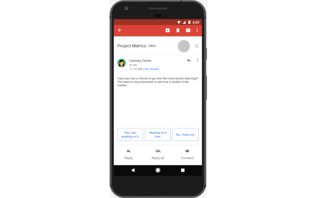 这个动图展示了 Gmail 智能回复的工作方式(图片来自网络)。