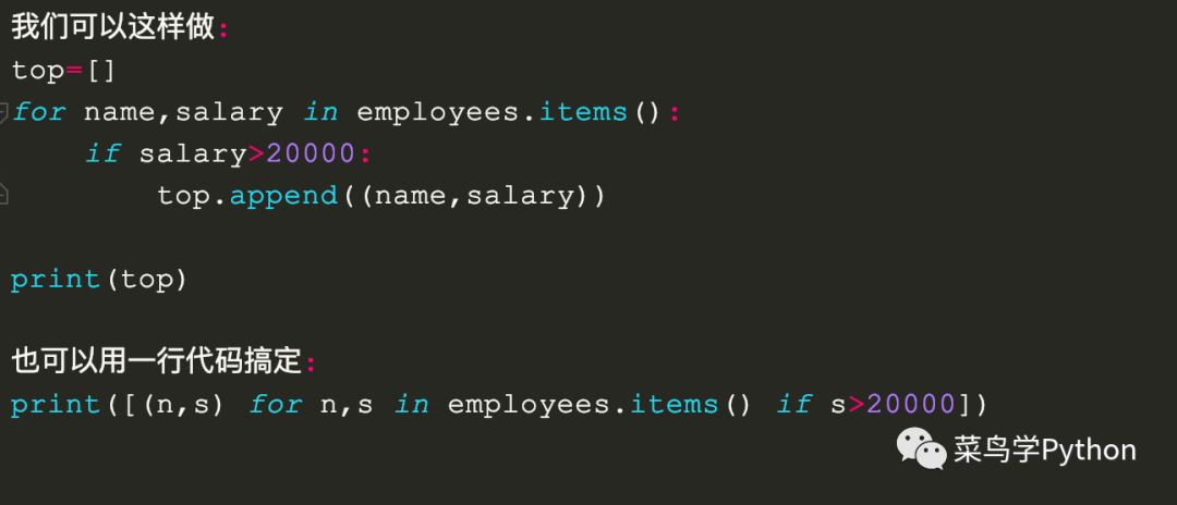 你手里有一个员工的薪资报表,需要找到年薪2万元以上的员工,你希望输出一个元组的列表,每个列表有两个值组成,员工的姓名和年薪这些信息。employees ={