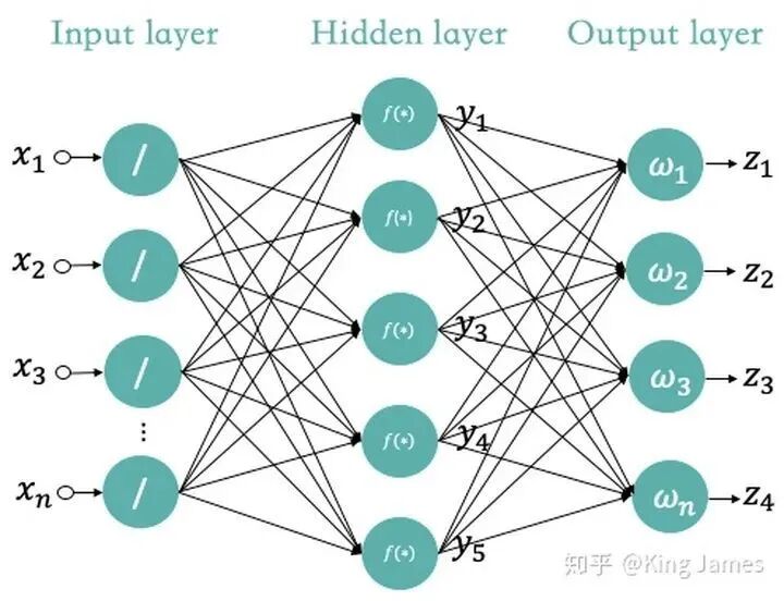 上文我们已经介绍了人工神经网络经典的MP模型,那么在深度学习里面我们使用的是什么样的神经网络,这个”深度“到底指的是什么?其实就是如下图所示的,输入层和输出层之间加更多的”Hidden Layer“隐藏层,加的越多越”深“。