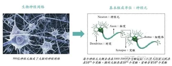 人类的大脑可以实现如此复杂的计算和记忆,就完全靠900亿神经元组成的神经网络。那么生物神经网络是如何运作的?可以参照下图: