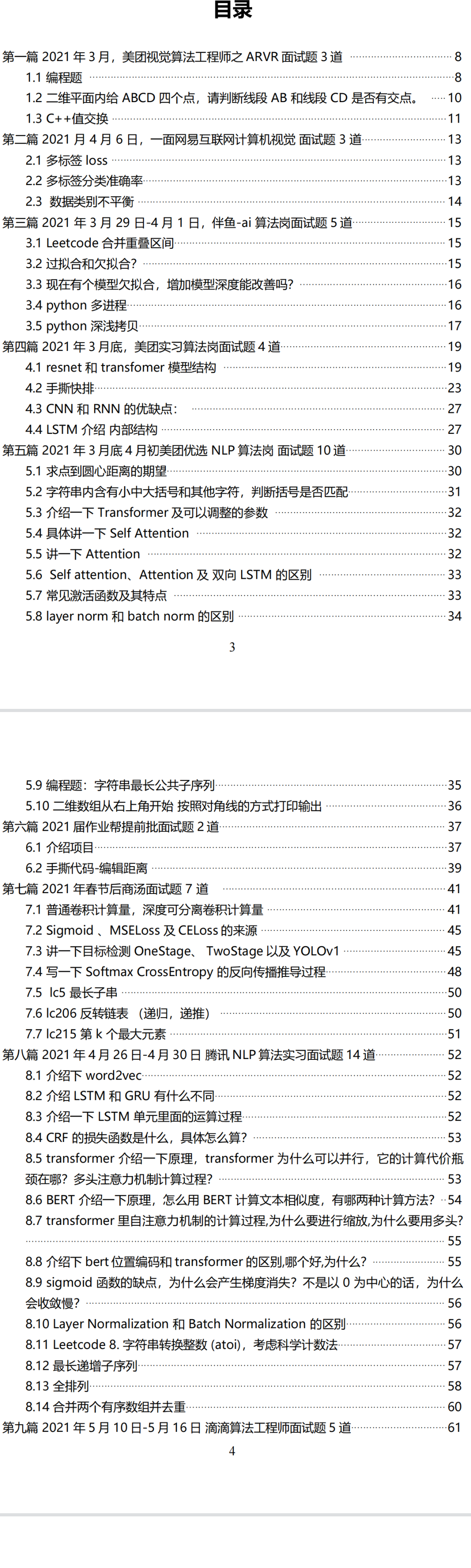 为了帮助从事AI的程序员们顺利挺进大厂,给大家整理了一份来自互联网(字节、阿里、京东、腾讯、美团等)大厂的2021年7月至9月份面试题。
