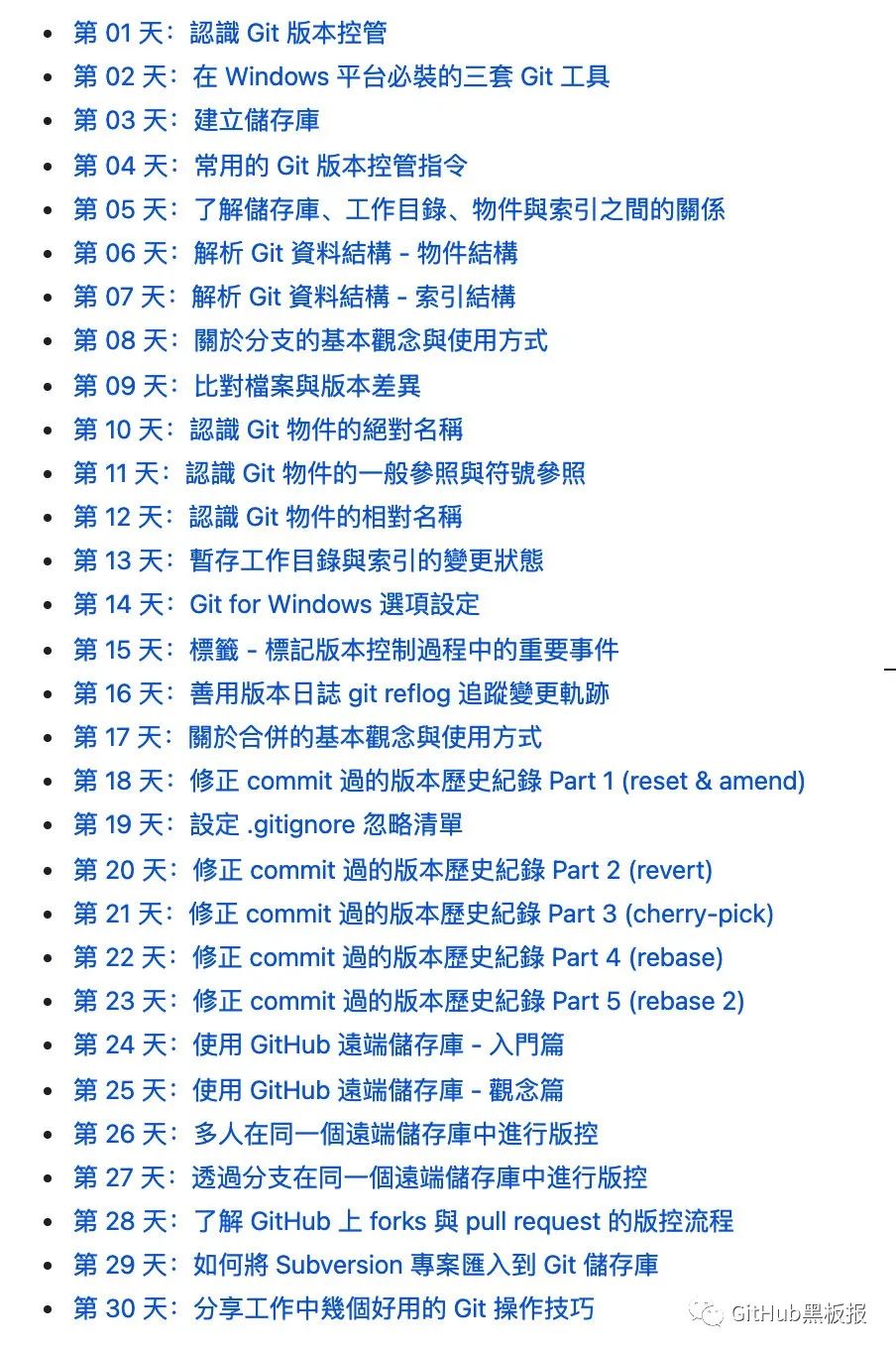 开源项目地址:https://github.com/doggy8088/Learn-Git-in-30-days