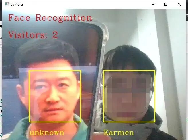 # traversal all the faces in the database for k in range(len(faces)): print("##### camera person", k+1, "#####") # 让人名跟随在矩形框的下方 # 确定人名的位置坐标 # 先默认所有人不认识,是 unknown # set the default names of faces with "unknown" name_namelist.append("unknown")