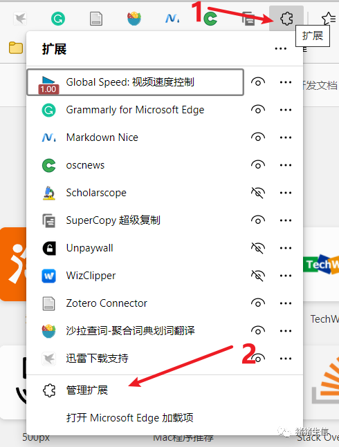 做科研比较推荐Microsoft Edge浏览器,可以在插件市场下载很多插件,来增强你的浏览器,以后再给大家推荐一些比较好用的插件,下面展示如何在Microsoft Edge浏览器中安装你想要的插件