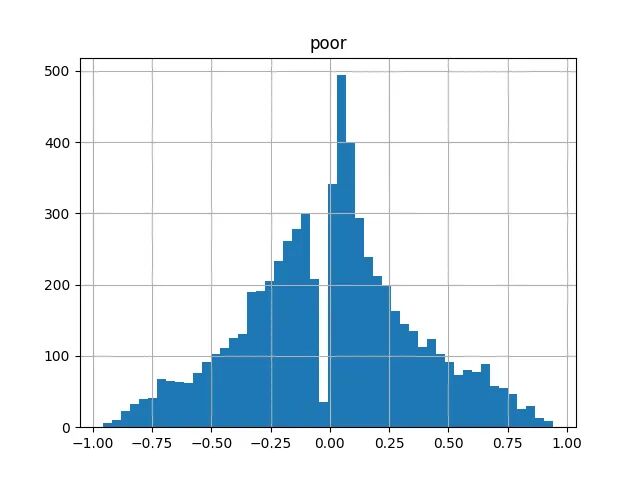 train_proba = model.predict_proba(X_train)[:,1]pd.DataFrame(train_proba-y_train.astype(int)).hist(bins=50)plt.show()