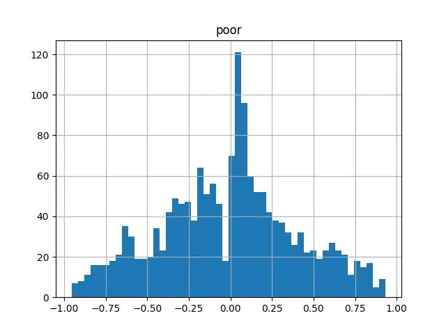 这一分布与高斯分布相似,在零点处有一个较高的峰值,但这个峰值可能是因为模型预测的零点数量较多(也就是说,模型已经学会了一种模式来区分 0 和 1 类别的子集)。