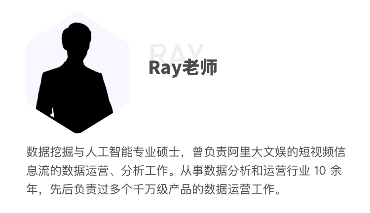 商业数据分析的难点在于项目实战,因为没有哪家公司会把数据机密轻易公开,而这恰恰是 Ray 老师最擅长帮你理解的部分。