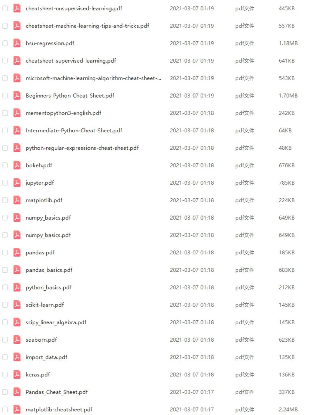 除此之外,作者还精心搜集了多达40多份的数据科学(包括数据清洗、数据分析、数据可视化)的Python资料,帮助你快速跳过初级阶段,进阶数据科学大牛