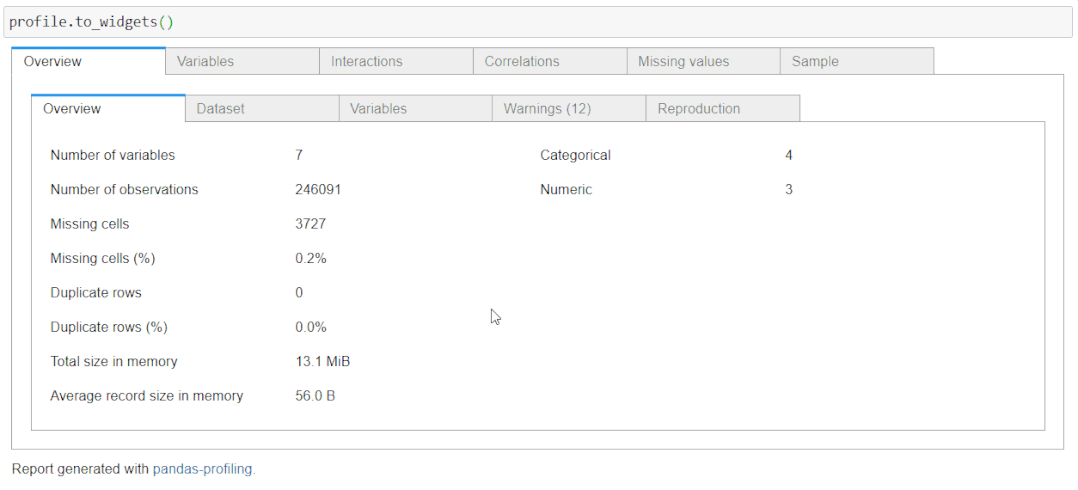 profile = ProfileReport(df) profile