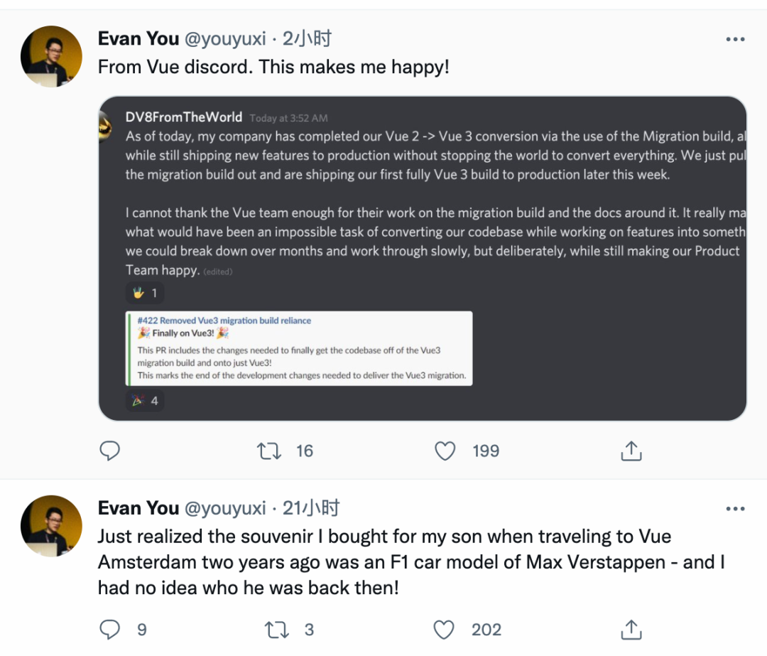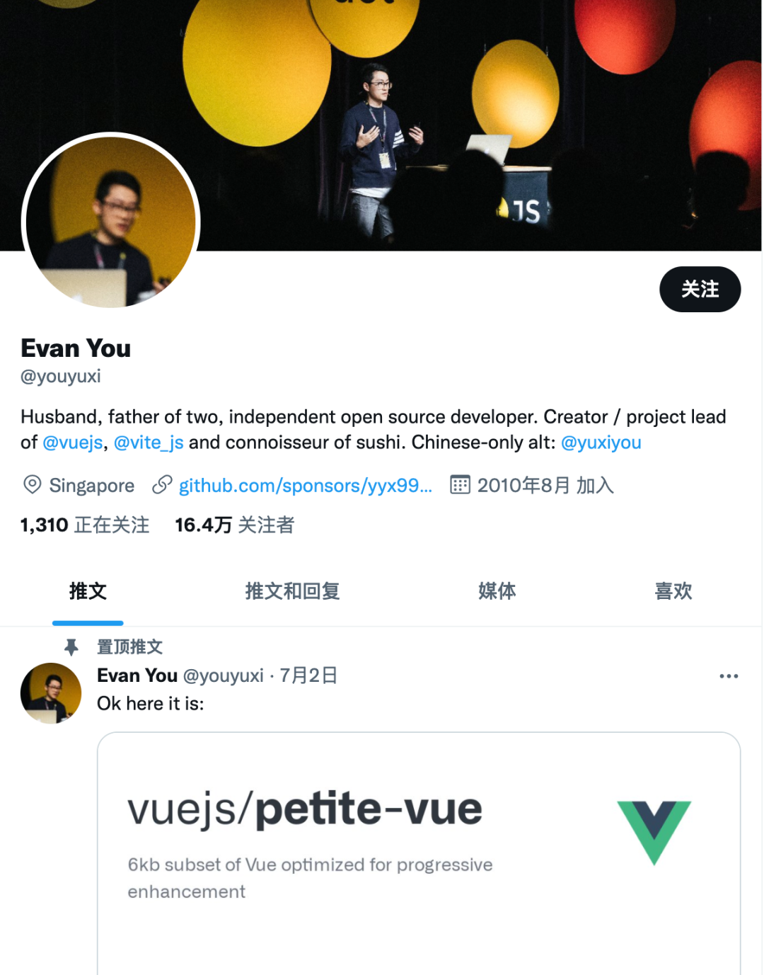 比如说尤大的 Twitter:https://twitter.com/youyuxi