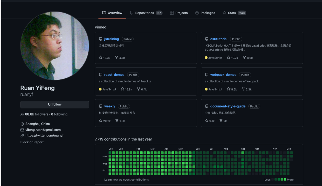 好了,不装了🙅🏻♀️,那就是大神阮一峰:https://github.com/ruanyf