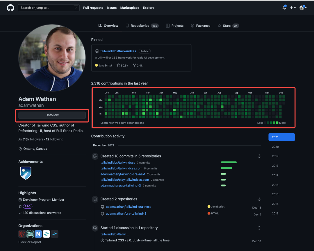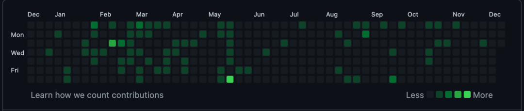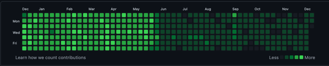 可以看看大佬们是如何努力工作的,Github 几乎全绿!🌚