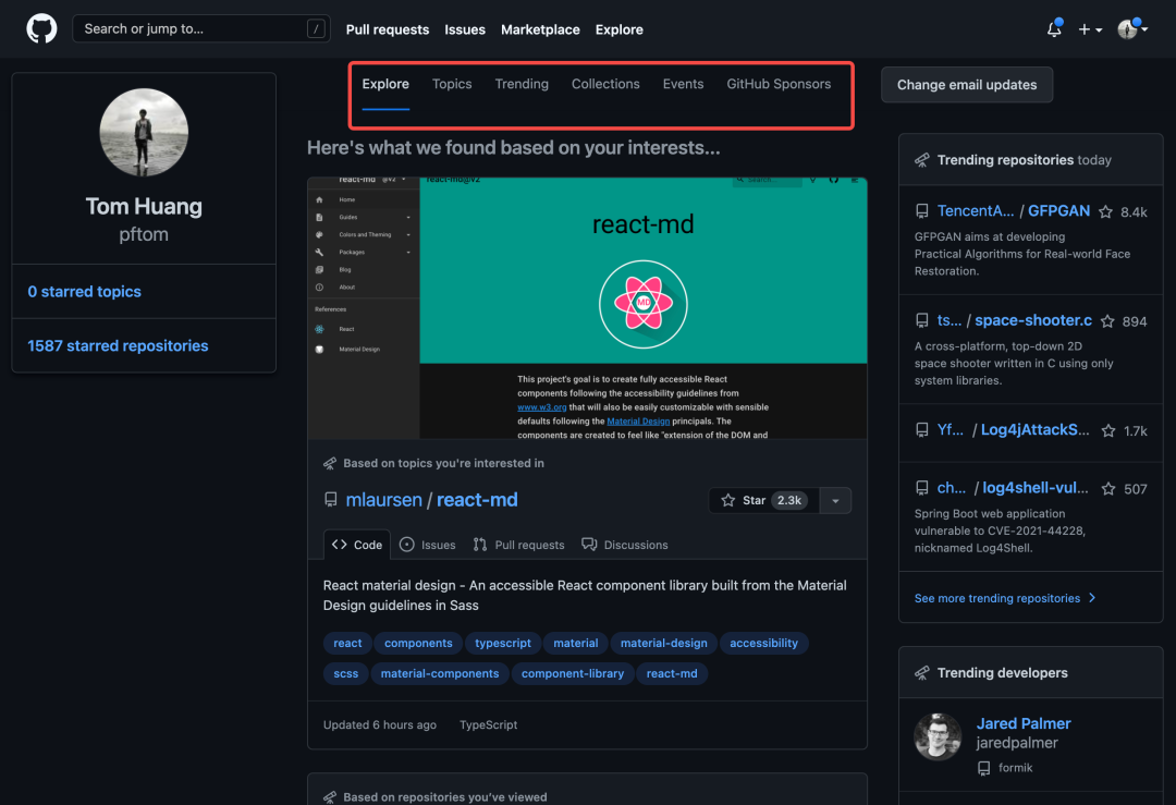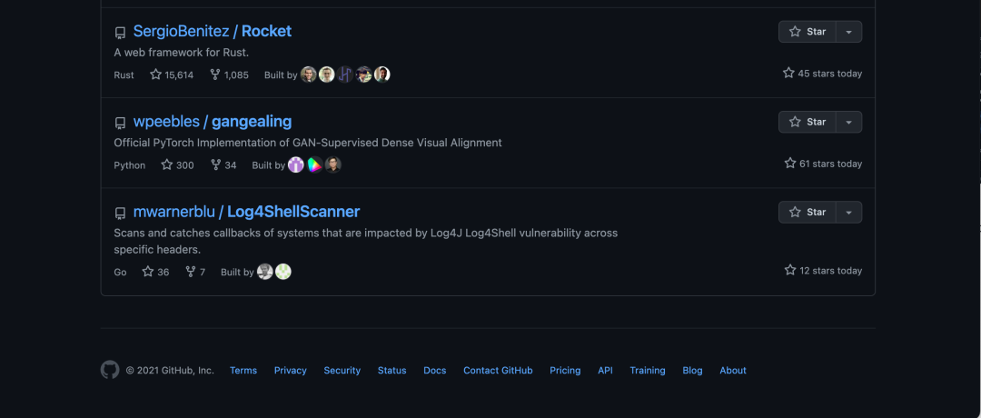可以说 Github Trending 是一个类似今日头条的 Feed 流,你平时逛 Github 越多,关注的感兴趣的人越多,Star 的项目越多,你会发现这条 Feed 流会越智能,一旦你所在的领域有新鲜的技术项目出来,那么你只要刷一下这个 Feed 流,立马能够掌握到最新的前沿技术进展。