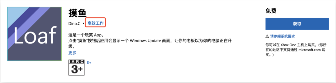 而有趣的是,开发者将这个工具上传到微软官方应用商店,并放在“高效工作”区,居然真的通过了!