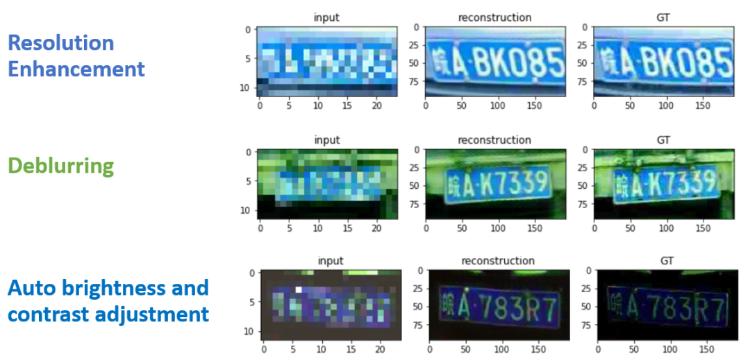在各种SISR应用中,汽车牌照的超分辨率以其巨大的潜力绝对是名列前茅的。例如,它可以用于执法,还可用于提高车牌识别和街道识别(地图服务)的准确性。在本文中,将介绍在Python中实现的车牌图像增强。Jupyter notebook教程可以在此处(https://github.com/zzxvictor/License-super-resolution) 找到。在深入探讨模型体系结构和训练策略细节之前,向你展示一下模型的能力:我们在逃逸事故案例中发现一个问题:车牌是在黑暗条件下由低质量摄像头拍摄的,而我们的模型不仅可以提高分辨率,还可以通过对图像进行去噪、调整亮度和对比度来增强车牌号的易读性。预处理