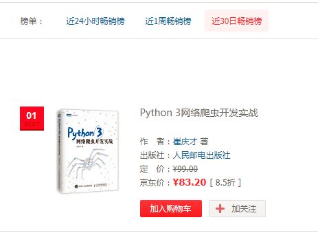之前已经为读者推荐过一次《Python 3 网络爬虫开发实战》了,不仅是最受读者欢迎的 Python 爬虫类图书,也是 30 日最受读者欢迎的 IT 新书:
