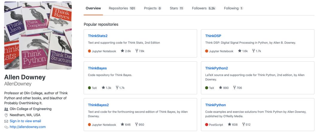 值得一提的是,除了《Think Python》这本书,Allen B. Downey 还开源了《Think Bayes》等书籍。