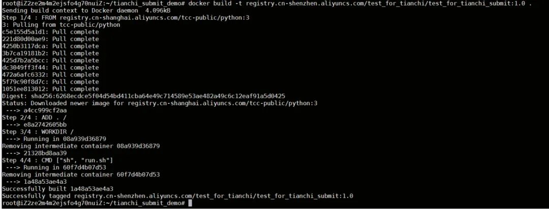 ,所以完整命令为:docker build \-t registry.cn-shenzhen.aliyuncs.com/test_for_tianchi/test_for_tianchi_submit