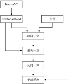 如上图,为该专利中展示的初始计算图的示意图,该初始计算图基于Tensorflow和Horovod生成,数据输入节点IteratorV2的类型为迭代器,可以按照上述处理步骤所示的方式对与数据输入节点IteratorV2对应的输入子图结构进行重构。
