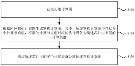 其次,根据初始计算图生成重构计算图,其中,重构计算图中包括多个计算节点组,不同的计算节点组对应的执行设备为芯片内不同的计算集群。对于用户而言,只能感受到一整块芯片,但是实际上逻辑架构上包括许多计算集群(cluster),这些计算集群可以并行地进行计算操作,以提高芯片的计算性能和存储性能。