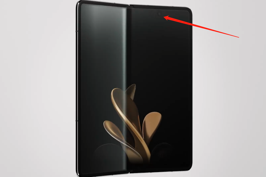 根据视频显示,荣耀Magic V采用双屏设计,其中内部大屏四周边框基本等宽,视觉效果更协调,采用了右半部分居中打孔的方案,这是此前未曾出现过的设计,不过打孔应该只有前摄,并且孔径看起来不大,应该不会带来太多影响。