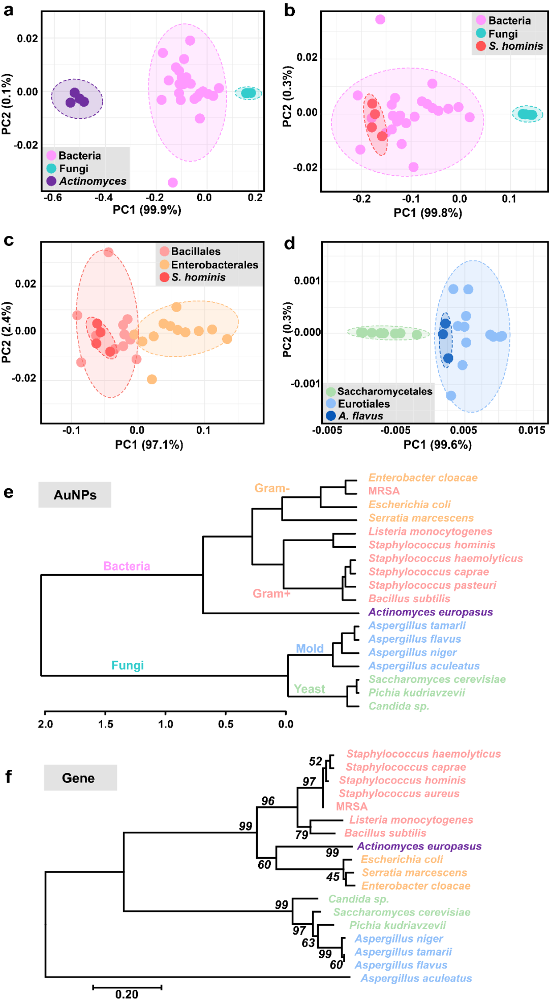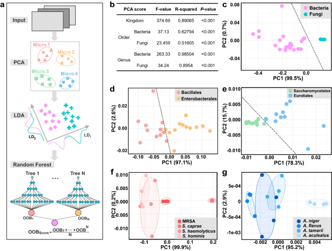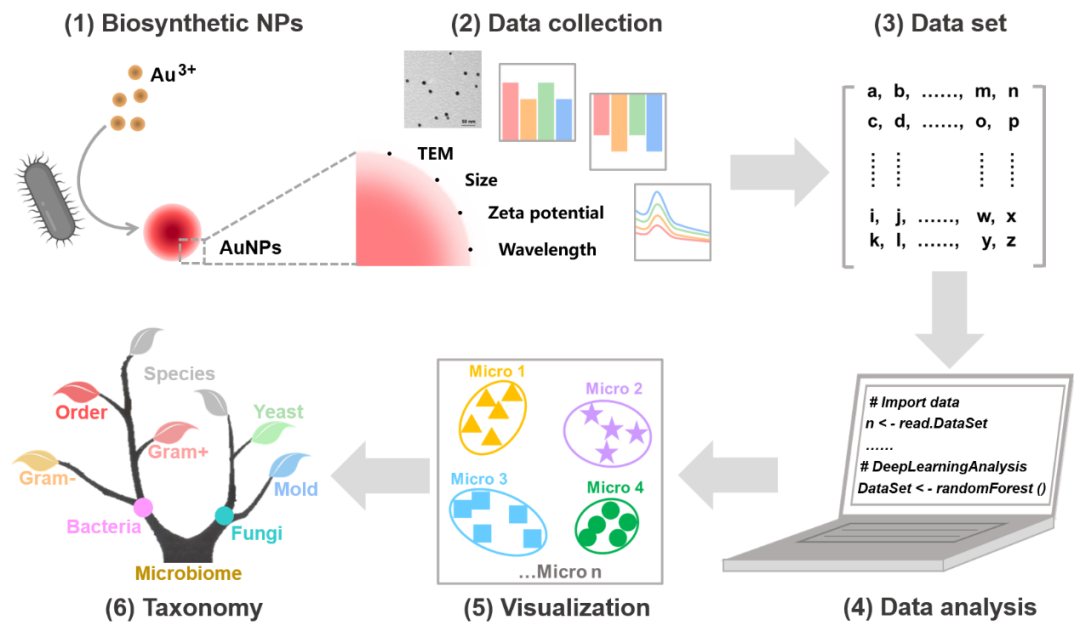 微生物鉴定在疾病诊断、环境监测和食品安全等领域中至关重要。随着科学技术的不断进步,微生物鉴定方法也在朝着更精准、更简捷的方向发展。近日,来自浙江大学的鲜于运雷研究员团队(https://person.zju.edu.cn/xianyu)通过分析微生物合成的纳米金颗粒,开发了一种基于机器学习的微生物鉴定策略。