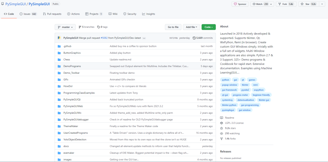 # This is an Event Loop whileTrue: event, values = window.read(timeout=100) # keep an animation running so show things are happening window['-GIF-IMAGE-'].update_animation(sg.DEFAULT_BASE64_LOADING_GIF, time_between_frames=100) if event notin (sg.TIMEOUT_EVENT, sg.WIN_CLOSED): print('============ Event = ', event, ' ==============') print('-------- Values Dictionary (key=value) --------') for key in values: print(key, ' = ',values[key]) if event in (None, 'Exit'): print("[LOG] Clicked Exit!") break elif event == 'About': print("[LOG] Clicked About!") sg.popup('PySimpleGUI Demo All Elements', 'Right click anywhere to see right click menu', 'Visit each of the tabs to see available elements', 'Output of event and values can be see in Output tab', 'The event and values dictionary is printed after every event') elif event == 'Popup': print("[LOG] Clicked Popup Button!") sg.popup("You pressed a button!") print("[LOG] Dismissing Popup!") elif event == 'Test Progress bar': print("[LOG] Clicked Test Progress Bar!") progress_bar = window['-PROGRESS BAR-'] for i in range(1000): print("[LOG] Updating progress bar by 1 step ("+str(i)+")") progress_bar.UpdateBar(i + 1) print("[LOG] Progress bar complete!") elif event == "-GRAPH-": graph = window['-GRAPH-'] # type: sg.Graph graph.draw_circle(values['-GRAPH-'], fill_color='yellow', radius=20) print("[LOG] Circle drawn at: " + str(values['-GRAPH-'])) elif event == "Open Folder": print("[LOG] Clicked Open Folder!") folder_or_file = sg.popup_get_folder('Choose your folder') sg.popup("You chose: " + str(folder_or_file)) print("[LOG] User chose folder: " + str(folder_or_file)) elif event == "Open File": print("[LOG] Clicked Open File!") folder_or_file = sg.popup_get_file('Choose your file') sg.popup("You chose: " + str(folder_or_file)) print("[LOG] User chose file: " + str(folder_or_file)) elif event == "Set Theme": print("[LOG] Clicked Set Theme!") theme_chosen = values['-THEME LISTBOX-'][0] print("[LOG] User Chose Theme: " + str(theme_chosen)) window.close() window = make_window(theme_chosen)