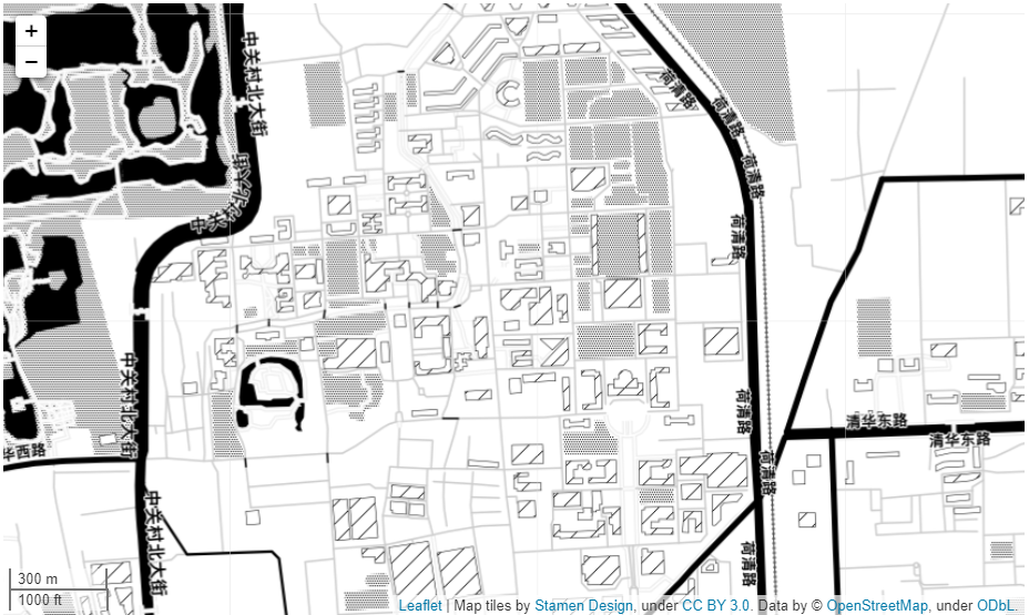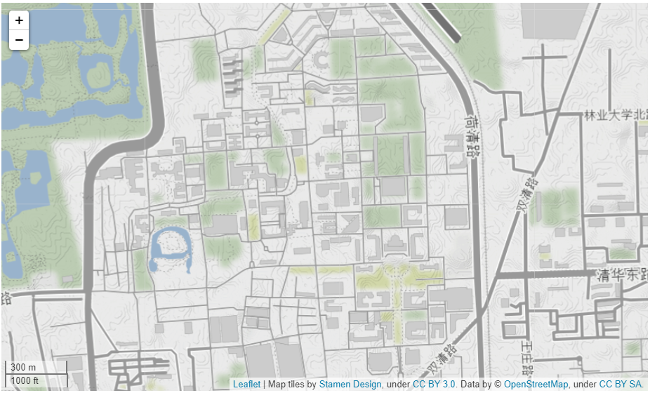 m = folium.Map([40.002694, 116.322373], tiles='http://map.geoq.cn/ArcGIS/rest/services/ChinaOnlineStreetGray/MapServer/tile/{z}/{y}/{x}', attr='灰色版', zoom_start=15, ) m