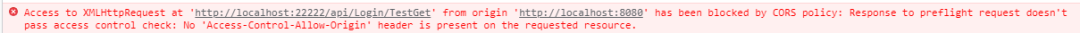 情况1: Access to XMLHttpRequest at 'http://localhost:22222/api/Login/TestGet' from origin 'http://localhost:8080' has been blocked by CORS policy: Response to preflight request doesn't pass access control check: No 'Access-Control-Allow-Origin' header is present on the requested resource.