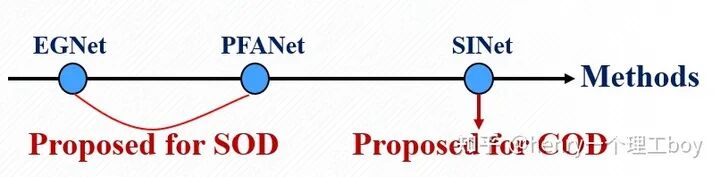 本次涉及三个方法,前两个是针对显著性目标检测所提出的,分别是EGNet和PFANet;而后面的是专门针对于伪装目标检测提出的SINet。