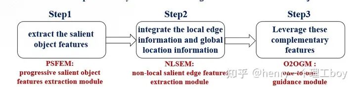 首先对EGNet进行介绍,EGNet,也称为边缘引导网络,顾名思义,我们知道他在保护边缘信息上做了功夫,整个方法可以分为三个步骤,第一步是提取边缘特征(PSFEM),第二步是将局部的边缘信息和全局的位置信息聚合(NLSEM),最后一步则是将特征进行平衡,得到我们想要的最后的特征(O2OGM)。