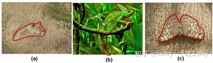 如今,随着CV领域在深度学习方向上的发展,学者们把目光投向了目标检测这一领域。与通用目标检测以及显著性目标检测不一样,通用目标检测与显著性目标检测中目标与背景均有较为明显的差异性,这种差异通常情况下通过人眼也能较容易地分辨出来。但伪装目标检测中伪装目标与背景之间存在高度的相似性,因此关于伪装目标的检测显得更具挑战性。