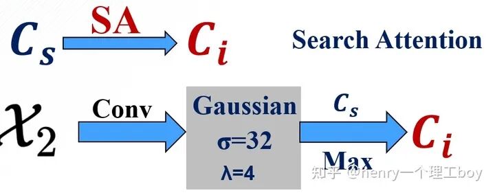 ,就得使用我们的注意力机制了。这里我们引入了搜索注意力,具体是怎么实现的呢?大家想一想我们前面把特征分成了低层特征、高层特征还有中层特征。我们平时一般都叫低层特征和高层特征,很少有提到中层特征的。其实我们这里这样叫,是有打算的,我们认为中层特征他既不像低层特征那么浅显,也不像高层特征那样抽象,所以我们对他进行一个卷积操作(但是我们的卷积核用的是高斯核函数方差取32,核的尺寸我们取为4,我们学过数字图像处理,都知道这样的一个操作能起到一个滤波的作用,我们的不相关特征能被过滤掉)但是有同学就会问了,那你这样一过滤,有用的特征不也过滤掉了吗?基于这样的考虑,我们把过滤后的特征图与刚才的这个 再来做一个函数,什么函数呢?就是一个最大化函数,这样我们不就能来突出伪装图 初始的伪装区域了吗?