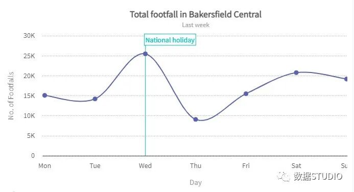 线形图它将一系列数据点显示为标记。这些点通常按其 x 轴值排序。这些点用直线段连接。折线图用于可视化一段时间内数据的趋势。