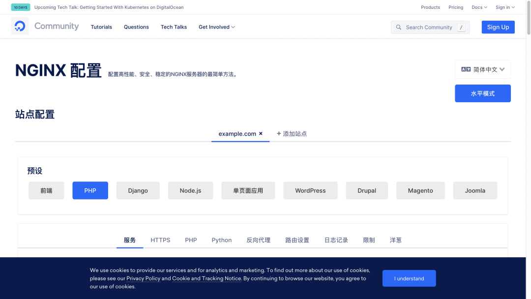 网站:digitalocean.com/community/tools/ngin