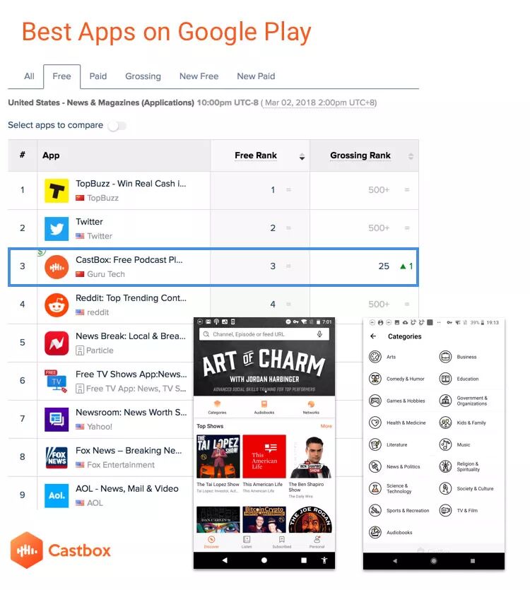 Castbox 作为面向全球 175 个国家并支持 70 种语言的平台应用,不仅收录了全球的开放电台和播客节目,同时拥有大量优质的自有版权内容。目前,Castbox 已有1,600万用户,5,000万个音频内容,是 Google Play 全球排名第一的音频产品。期待,一个成熟的音频内容平台与区块链技术的深度结合,会产生怎样的产业变革和商业价值!