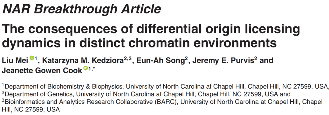 1、Mei, L., Kedziora, K. M., Song, E. A., Purvis, J. E., & Cook, J. G. (2022). The consequences of differential origin licensing dynamics in distinct chromatin environments.