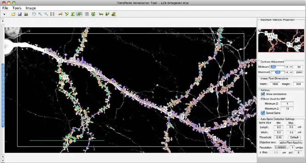 图 1.基于 MATLAB 的 Spine Tool,用来自动检测、注释和分析树突棘。