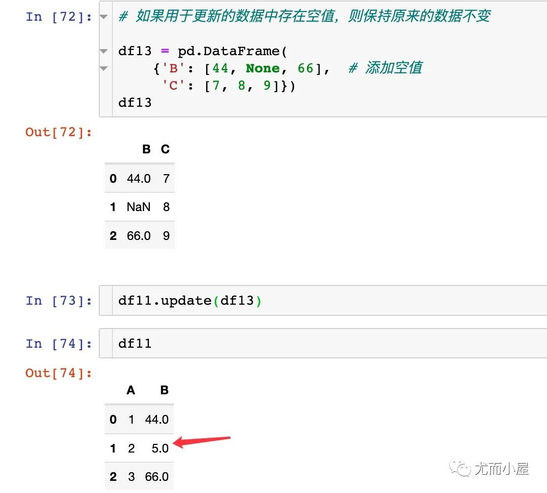 如果用于更新的数据中存在空值,则保持原来的数据不变