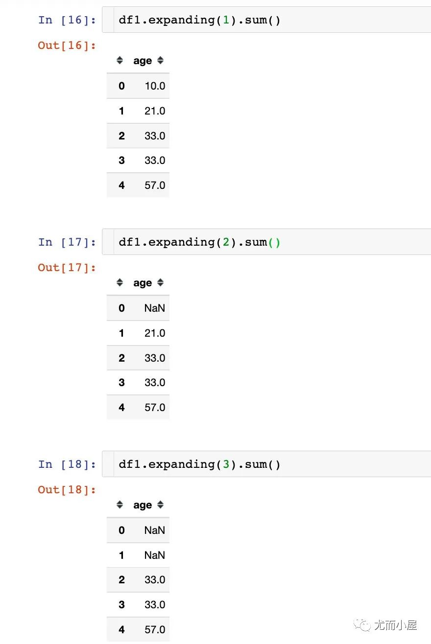 我们发现:当窗口数大于前面的记录数,则累计和用NaN表示