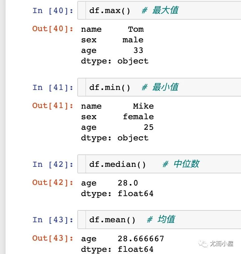4个基于统计概念的函数:最大值、最小值、均值、中位数