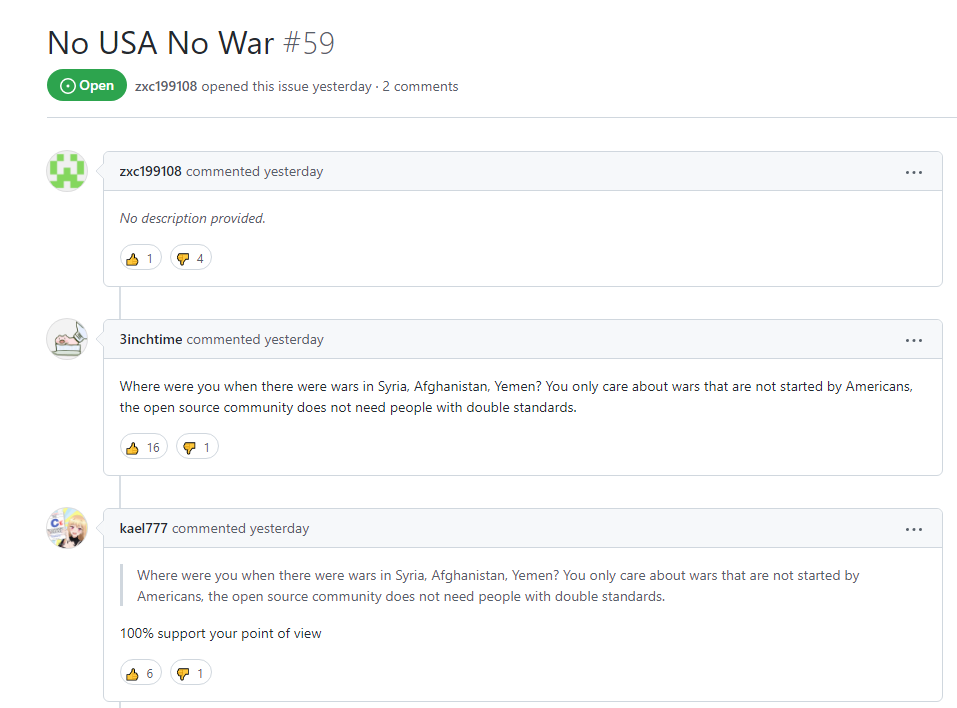 最近的网络上充满了火药味,这股火药味也同样弥漫到了GitHub,不仅仅是Trending排行榜,也在各项目的issues里。