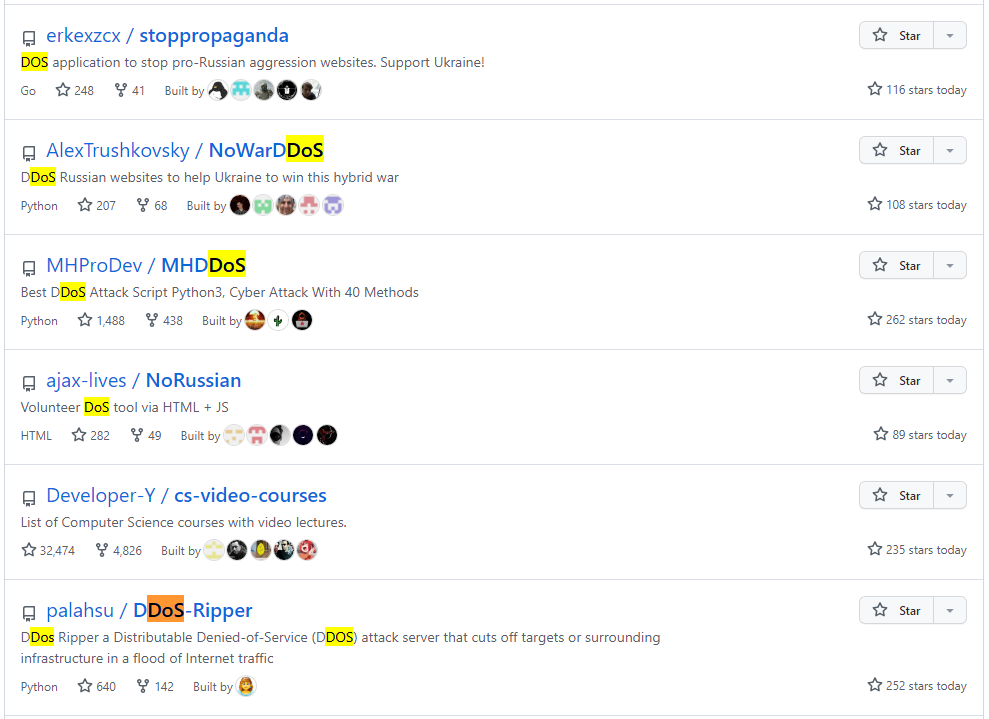 逛GitHub时发现,排行榜上大量的出现了DDoS相关的项目,其中还不乏直接针对俄罗斯的。